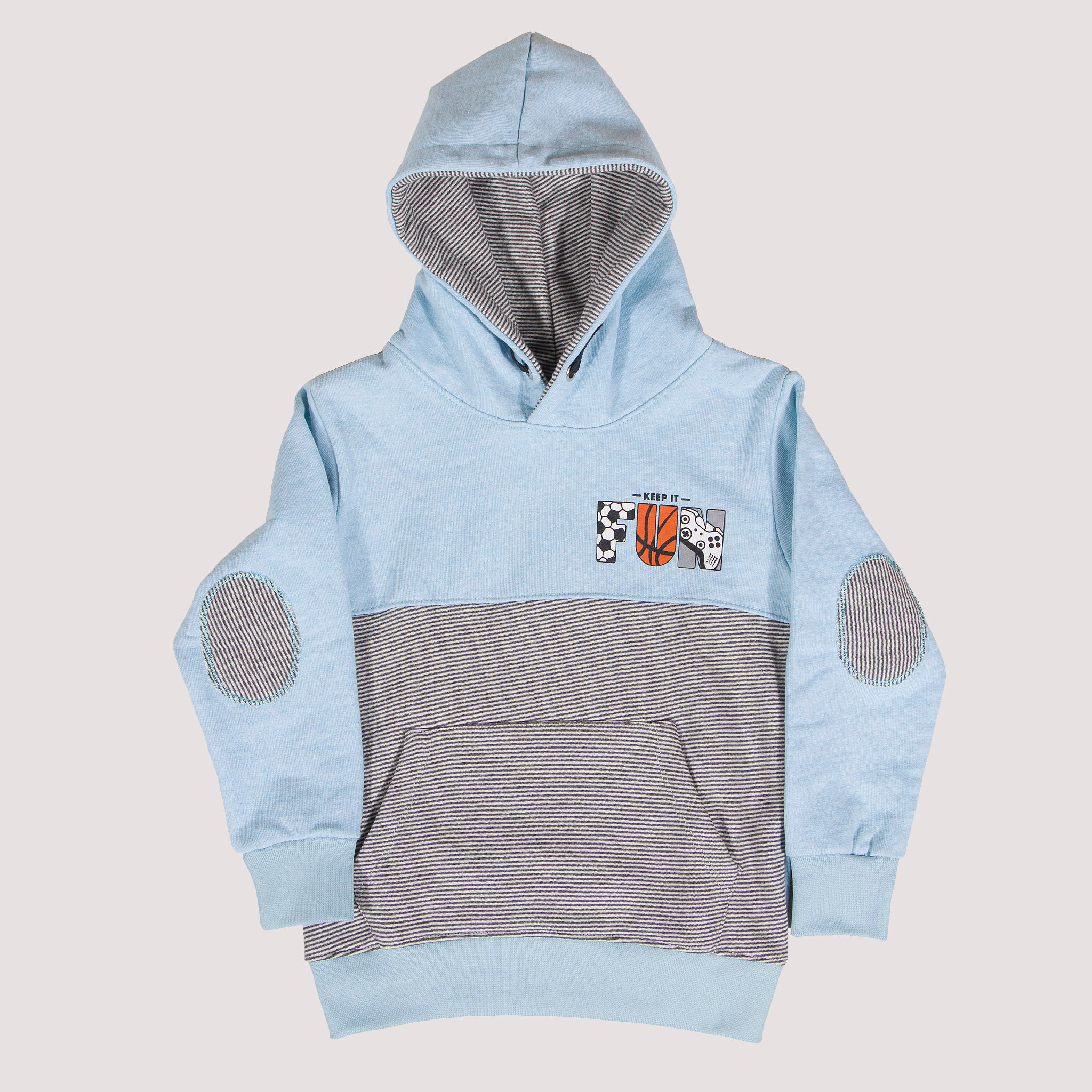 - Contrast at heather grey kangaroo pocket at front